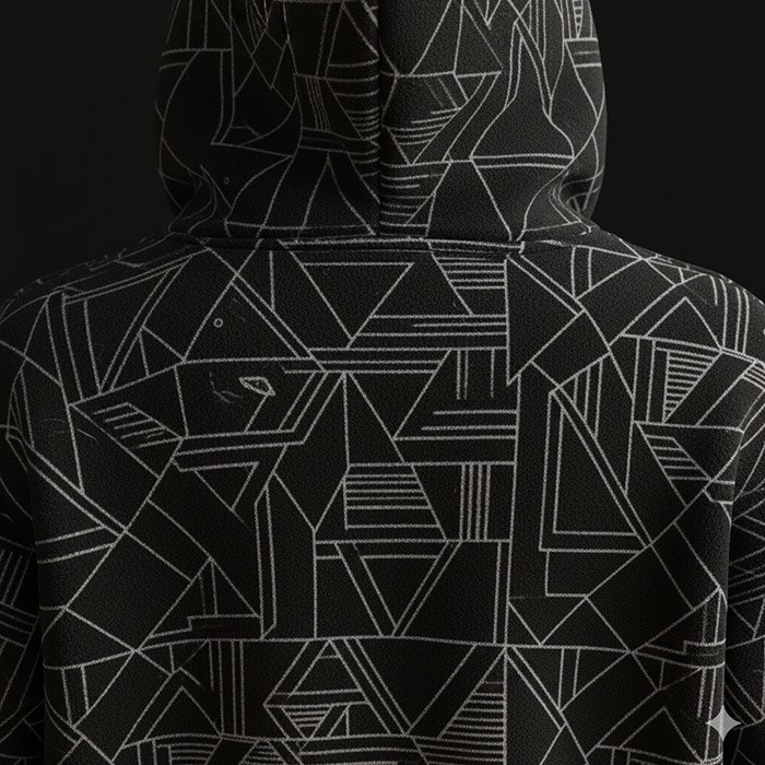 Prepare-se para o frio em grande estilo! Este moletom com capuz é feito em fleece de alta qualidade, super aquecido e macio ao toque. O corte moderno garante um visual descolado, e a estampa geométrica nas costas adiciona um toque de originalidade. Possui bolso frontal kangaroo e cordão para ajuste do capuz. Seu melhor companheiro para os dias mais frescos de Santa Maria.